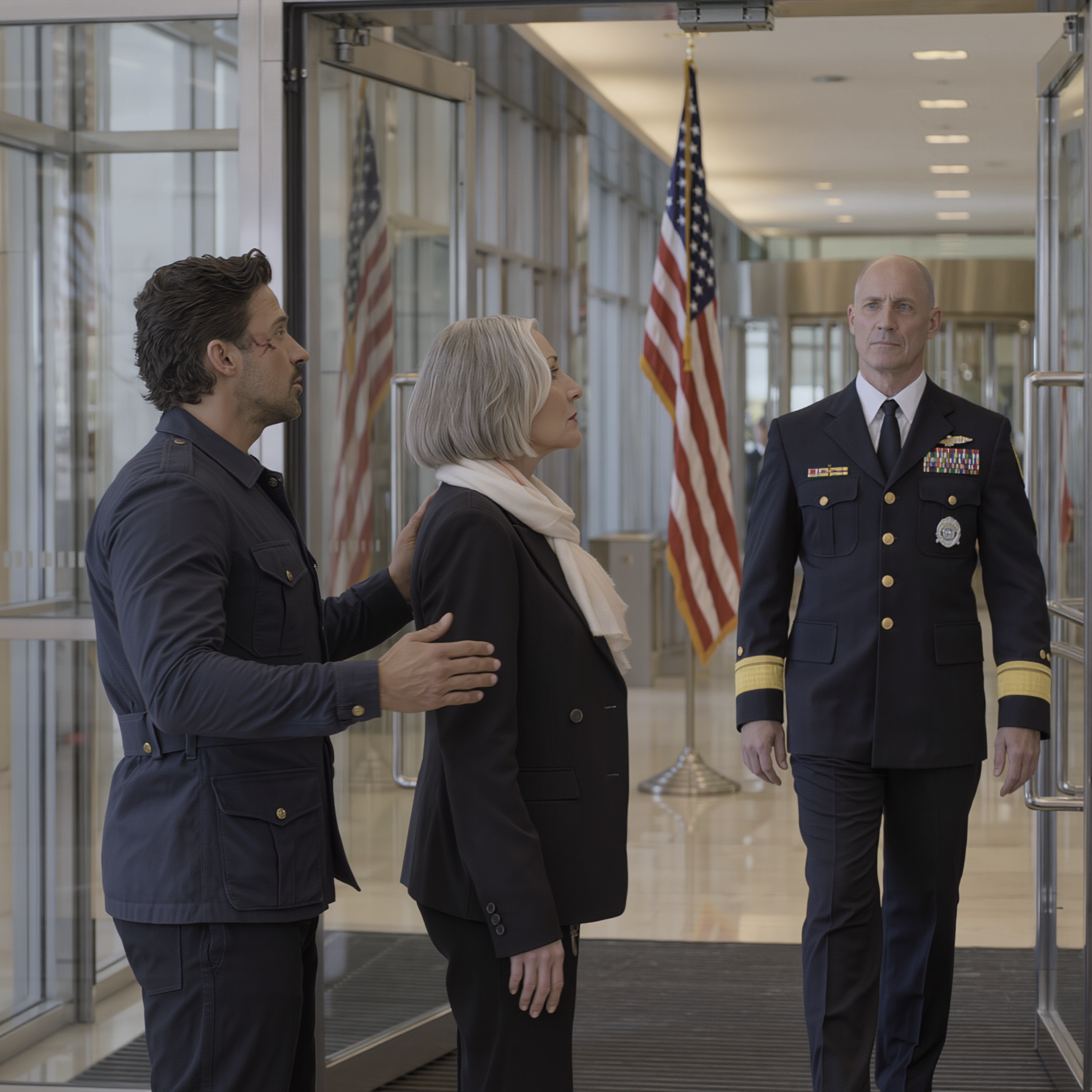 Before they could exit, the bank’s double doors swung open from the outside. Daniel instinctively positioned himself in front of Helen—a protective habit.
