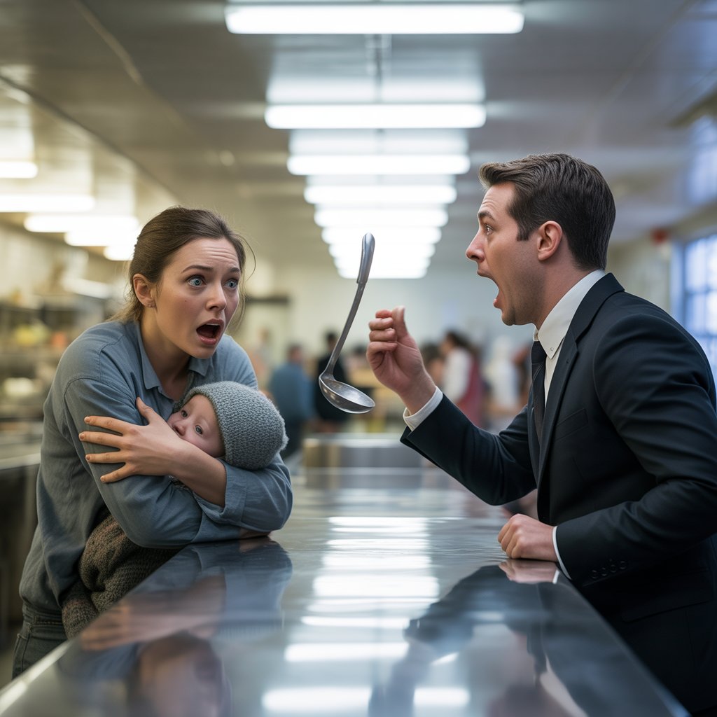 A wave of panic, cold and sharp, washed over Emma. She couldn’t let him see her like this. Not now, not ever. The shame was a physical weight, threatening to crush her. She, who had once been voted “most likely to succeed” alongside him, was now a specter of her former self, a desperate woman in a line for a handout. She turned to flee, to disappear back into the anonymity of the cold, dark street. But just then, Lily, sensing her mother’s distress, began to cry. Her small body trembled with cold and hunger. “Shh, baby, it’s okay,” Emma whispered, her voice cracking. But Lily’s cries escalated into heartbreaking sobs. “Mommy, I’m hungry,” she wailed. “You promised we could eat.” The words were a dagger to Emma’s heart. She couldn’t leave. She couldn’t let her daughter down, not again. Taking a shaky breath, she turned back, her heart pounding a frantic rhythm against her ribs. She pulled her hat lower, hoping the shadows would conceal her, that by some miracle, he wouldn’t recognize the broken woman she had become.